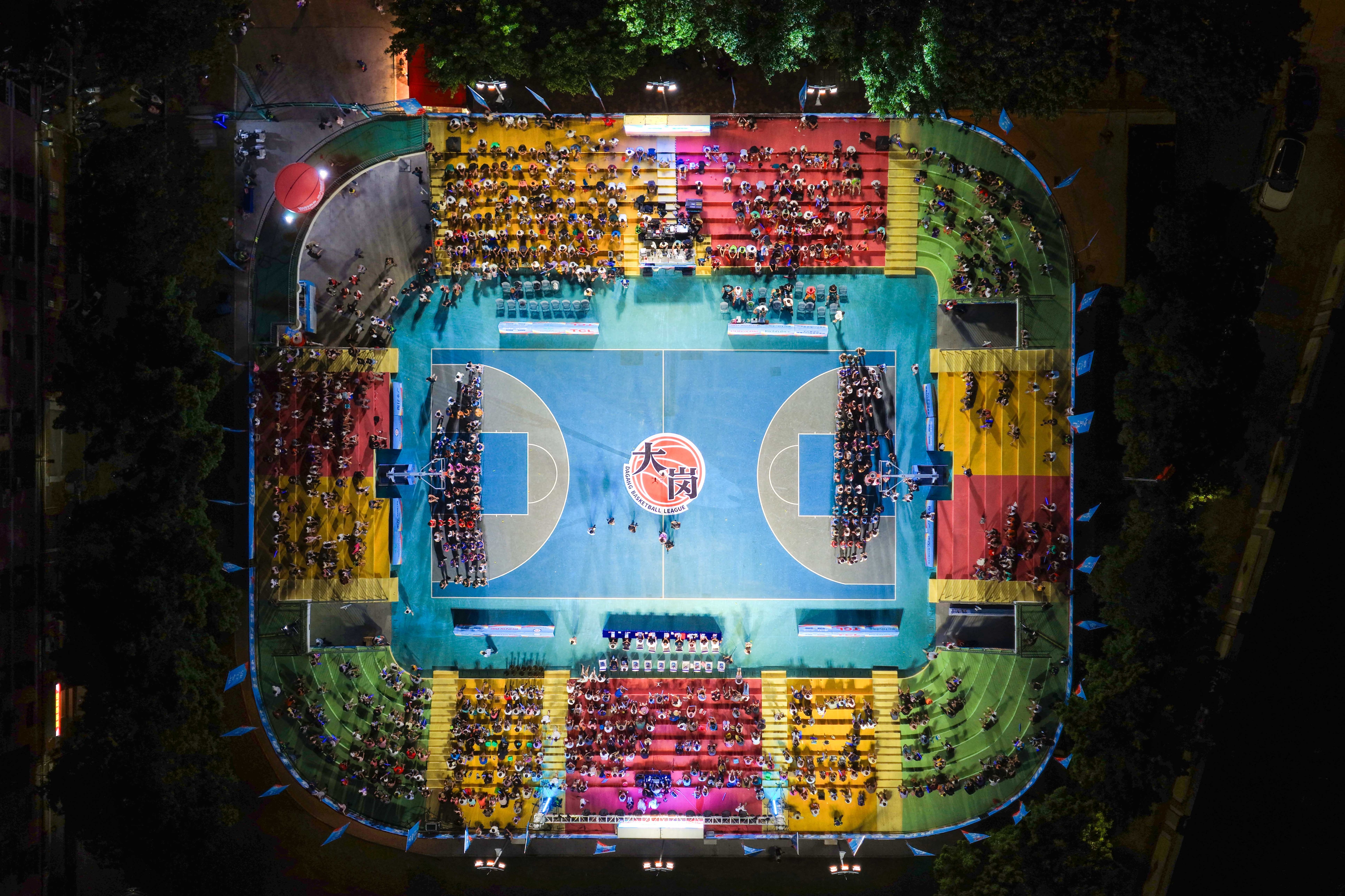 大岗镇,篮球渊源可追溯到清末民初,潭洲球场在很长一段时间里,是当地篮球爱好者挥洒汗水、切磋球技的“根据地”,即便在2024年球场进行全面升级改造后,当地政府和居民特意保留了球场大门的旧貌。